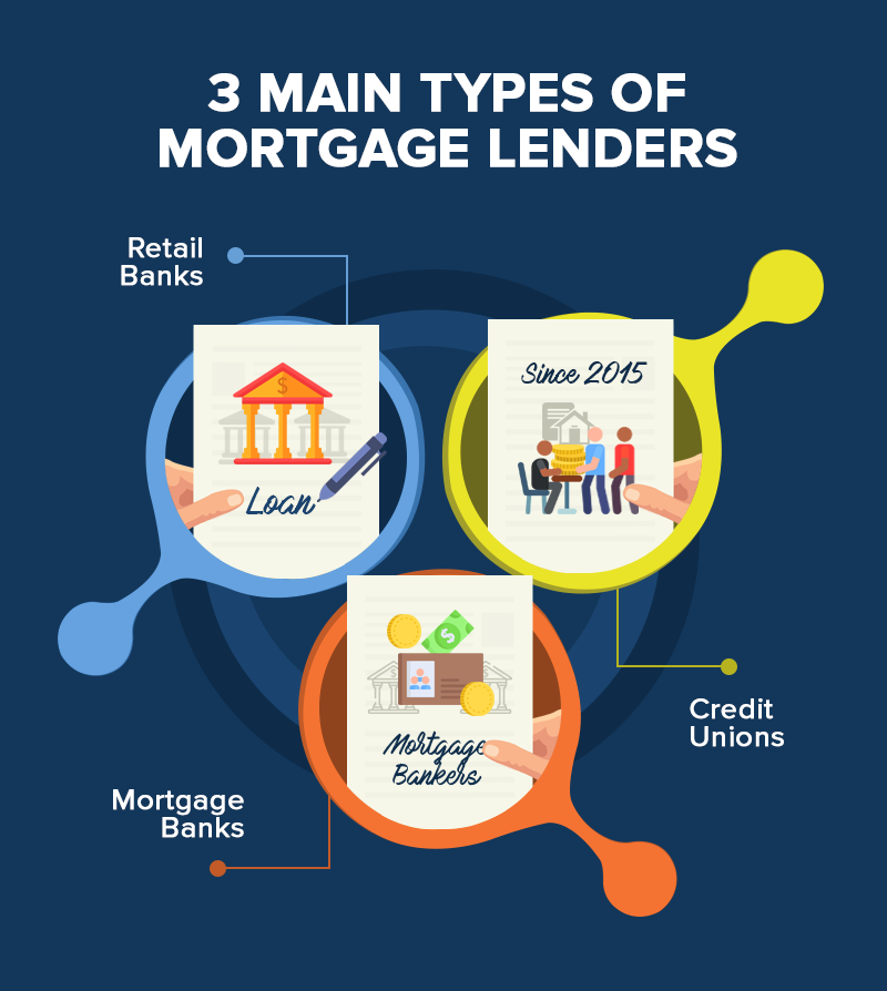 Mortgage lenders set their mortgage interest rates and other loan terms according to different factors. Likewise, borrowers need to meet certain criteria in terms of creditworthiness and financial resources in order to qualify for a mortgage. Generally, there are three main types of mortgage lenders: retail banks, credit unions, and mortgage banks.